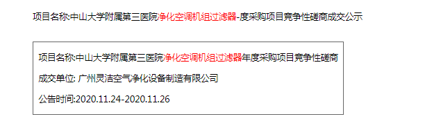 恭喜我司中標中山大學附屬第三醫院凈化空調機組過濾器年度服務